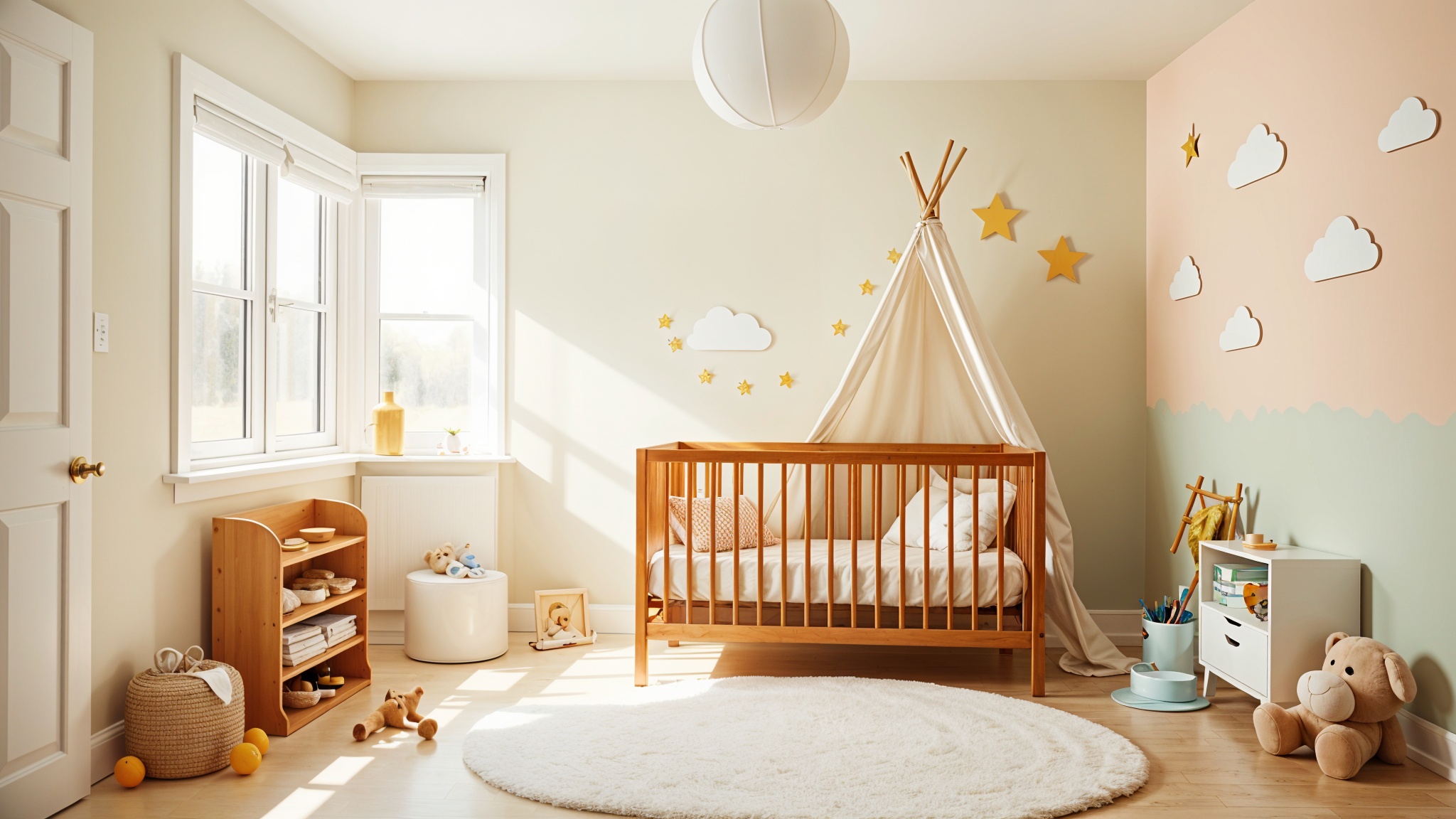 - Neonati e primi anni: Opta per tonalità tenui e rilassanti come il celeste, il rosa pallido, il lavanda, il beige o un verde menta molto soft. Queste sfumature creano un’atmosfera calma e serena.